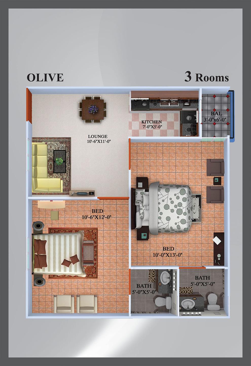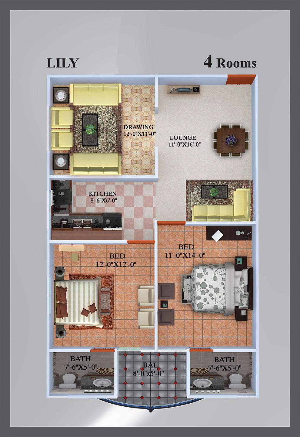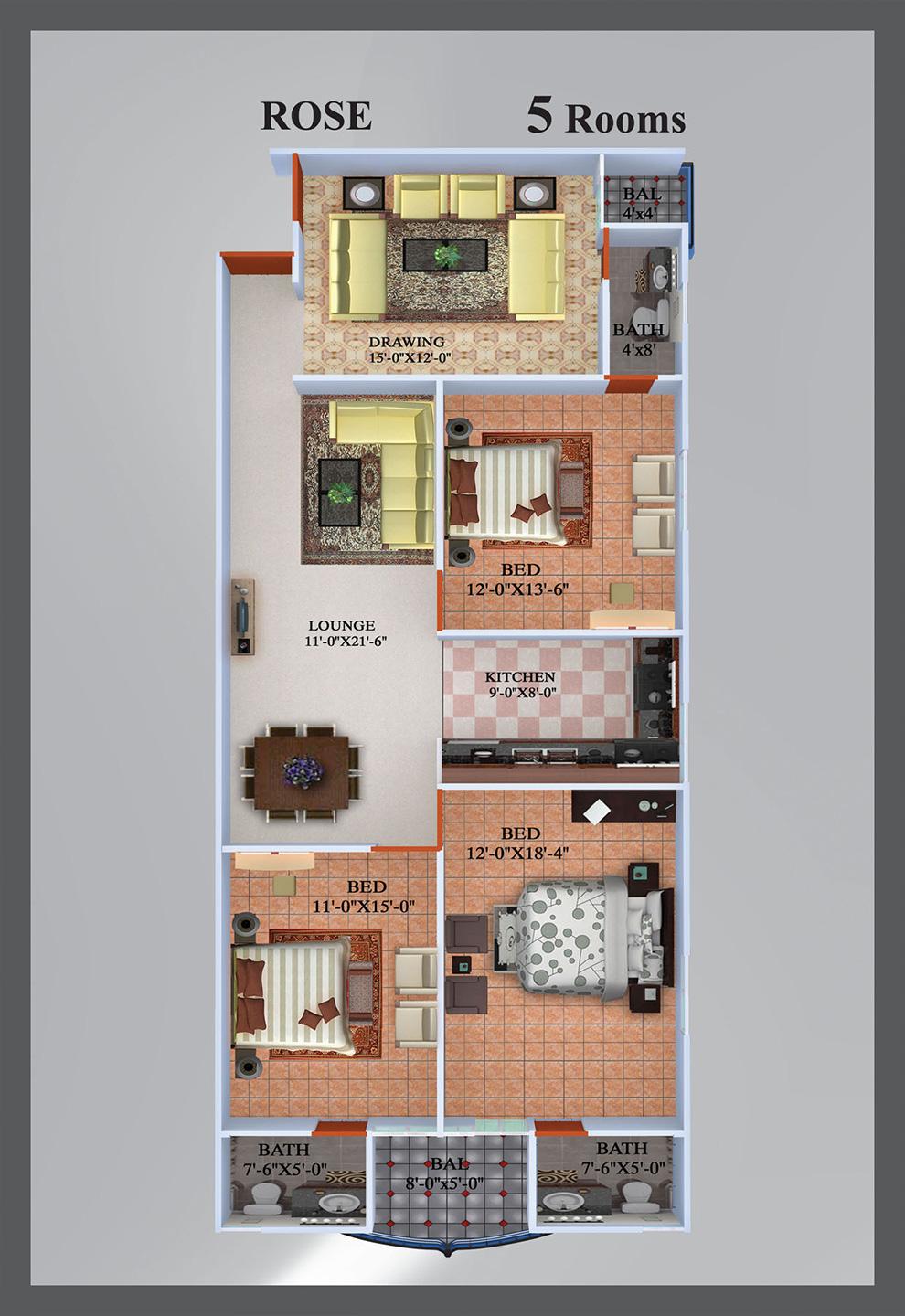 Apartment with 3, 4 and 5 gigantic rooms and a unique interior, enjoying an excellent location on Gulshan-Chowrangi. There is a Masjid located in it as well.